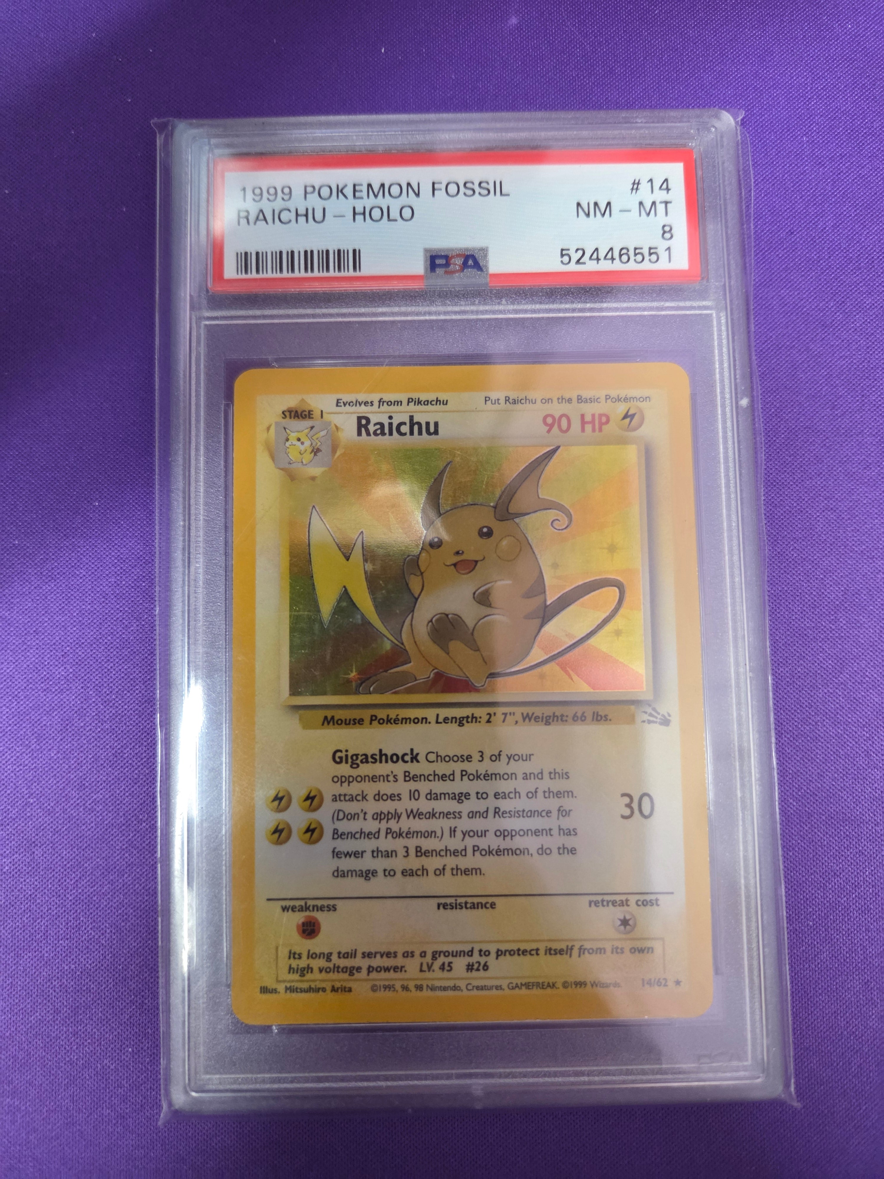 PSA 8 Raichu #14 Fossil Unlimited Holo