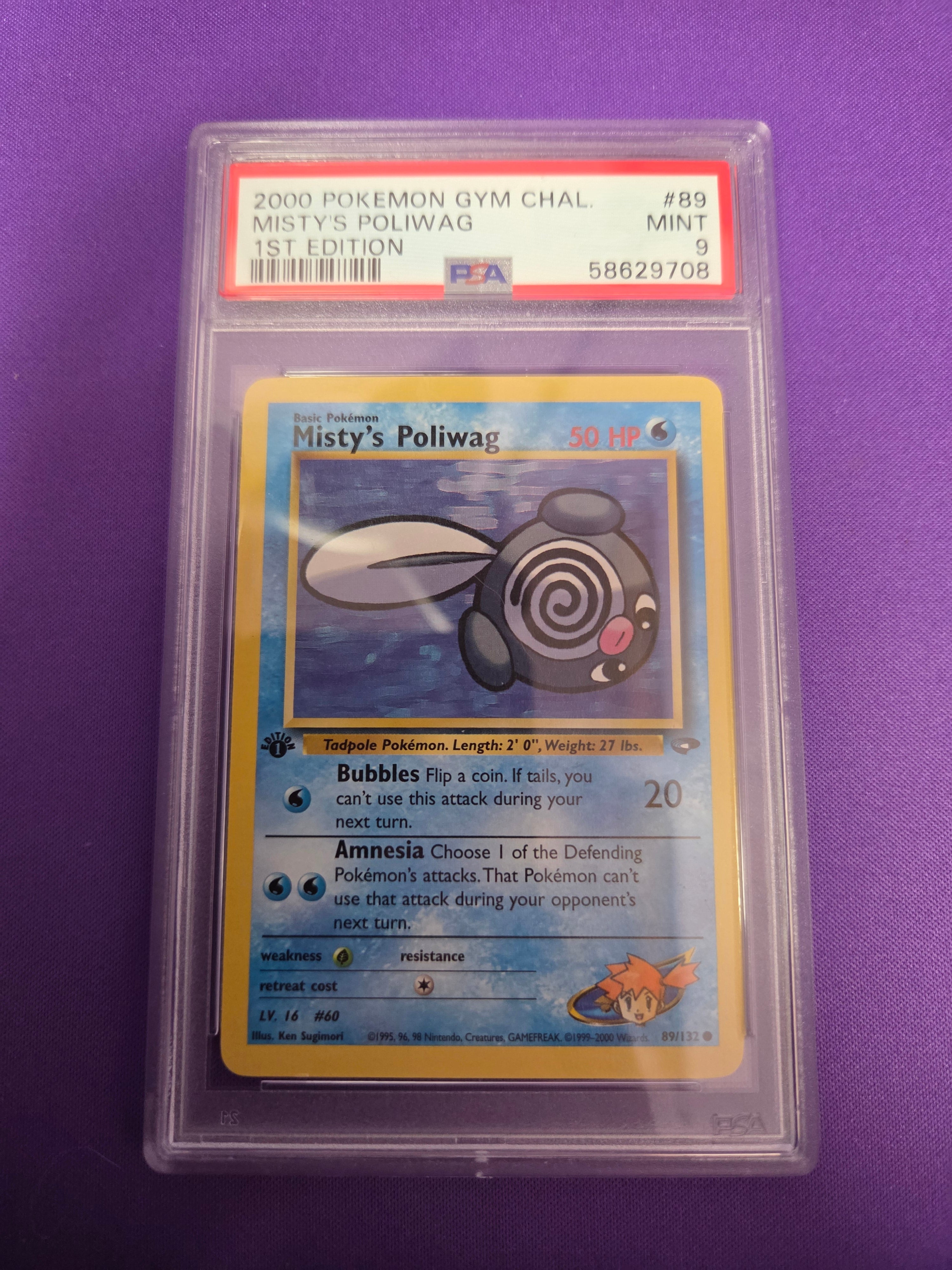 PSA 9 Misty's Poliwag #89 1st Edition Gym Challenge