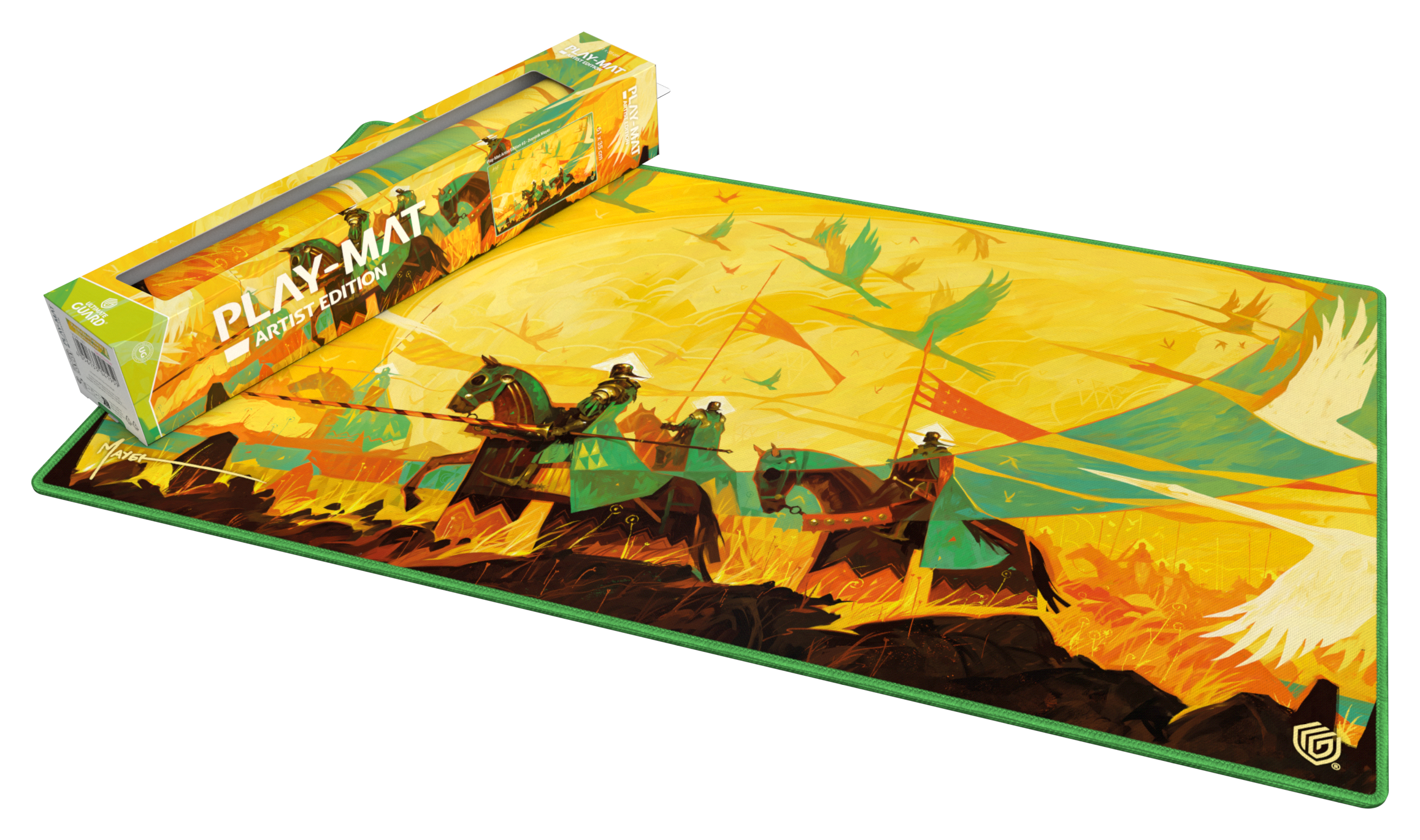 The Play-Mat from Ultimate Guard's Artist Edition #3, featuring artwork by Magic: The Gathering artist Dominik Mayer, is a high-quality, 61 x 35 cm play-mat that enhances the gaming experience while protecting TCG cards, sleeves, and accessories from scratches, wear, and dirt. The 2 mm thick, soft-cushioned play-mat is made from natural rubber and features our trusted anti-slip underside along with a premium, soft fabric surface. The play-mat's stitched edges prevent fraying and ensure long-lasting durability.