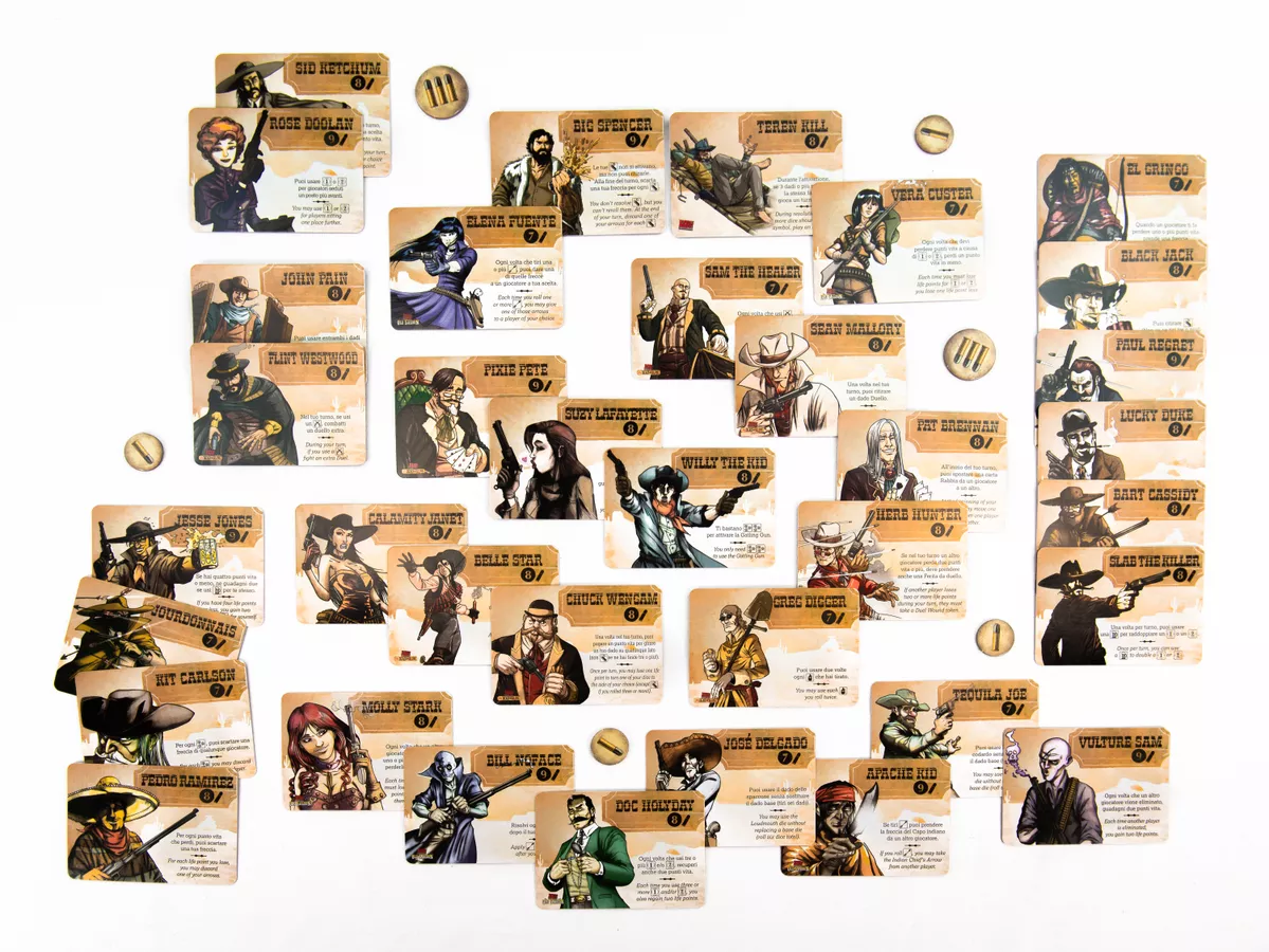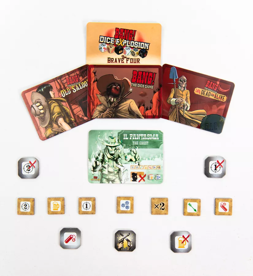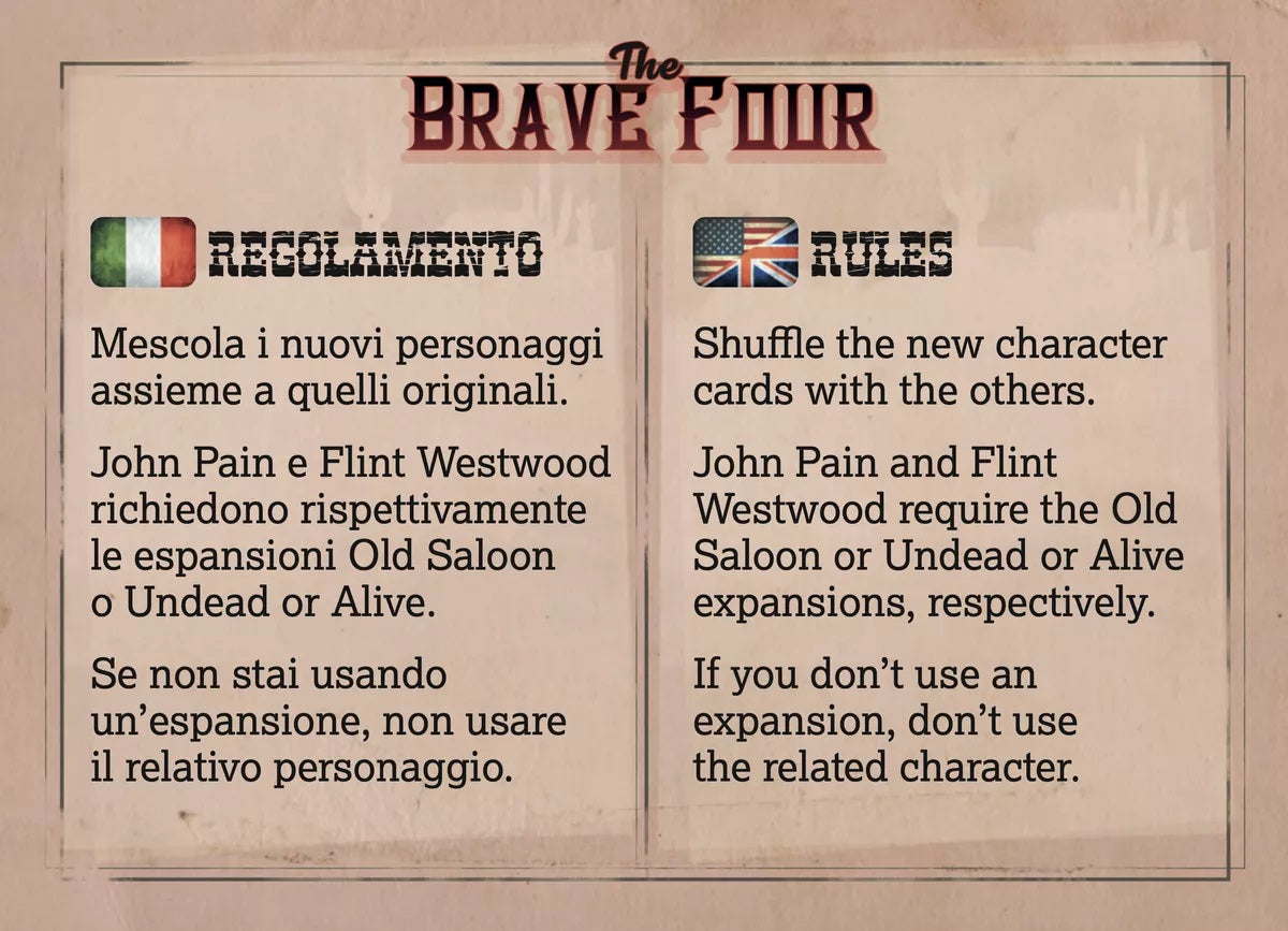 • Four brand new BANG! The Dice Game characters: (Flint Westwood, John Pain, Big Spencer, Teren Kill, AKA "the Brave Four")