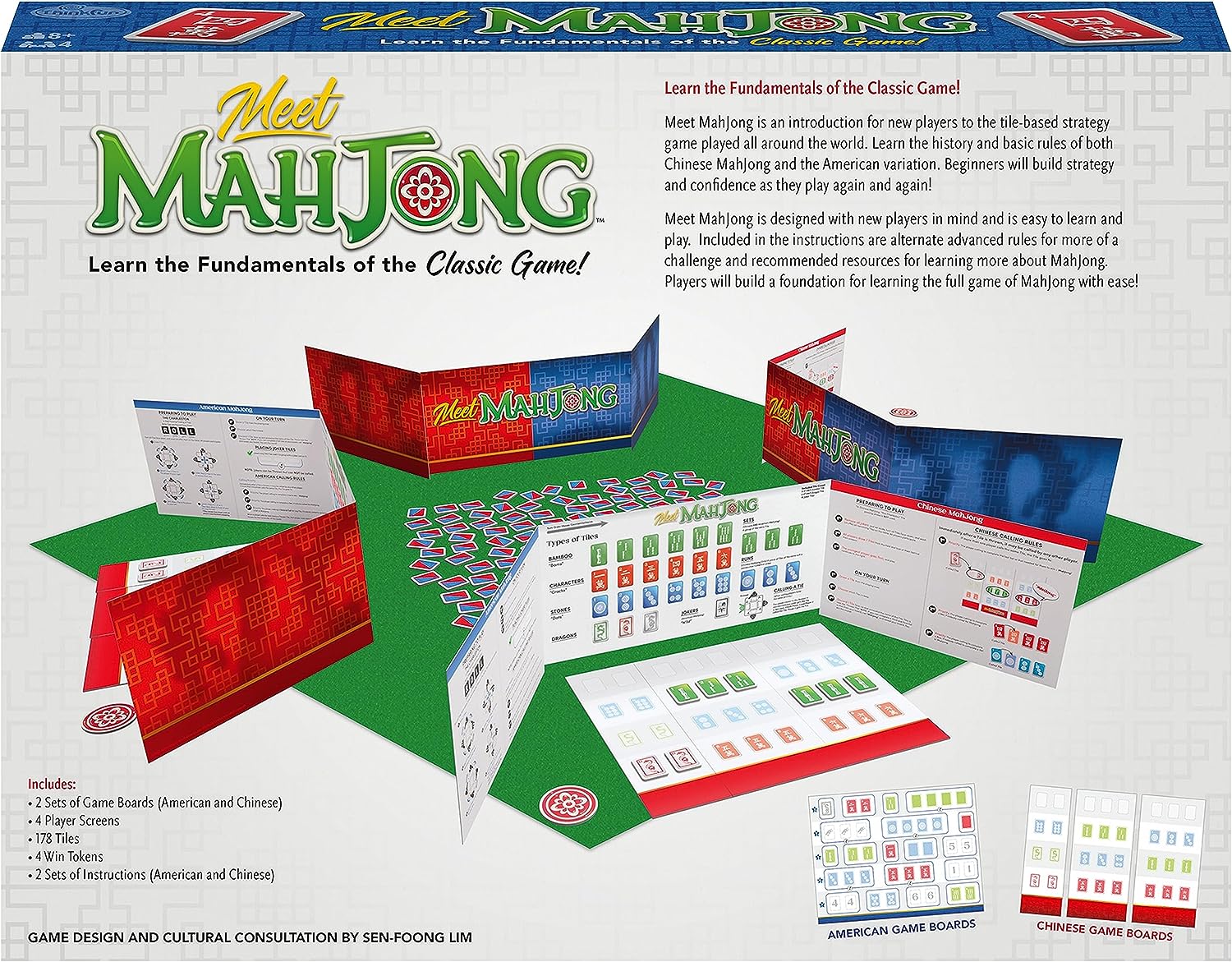 Learn the history and basic rules of both Chinese MahJong and the American variation. Perfect for 4 Players who want a challenging and fun board game night. Beginners will build strategy and confidence as they play again and again! Meet MahJong is designed with new players in mind and is easy to learn and play. Included in the instructions are alternate advanced rules for more of a challenge and recommended resources for learning more about MahJong.