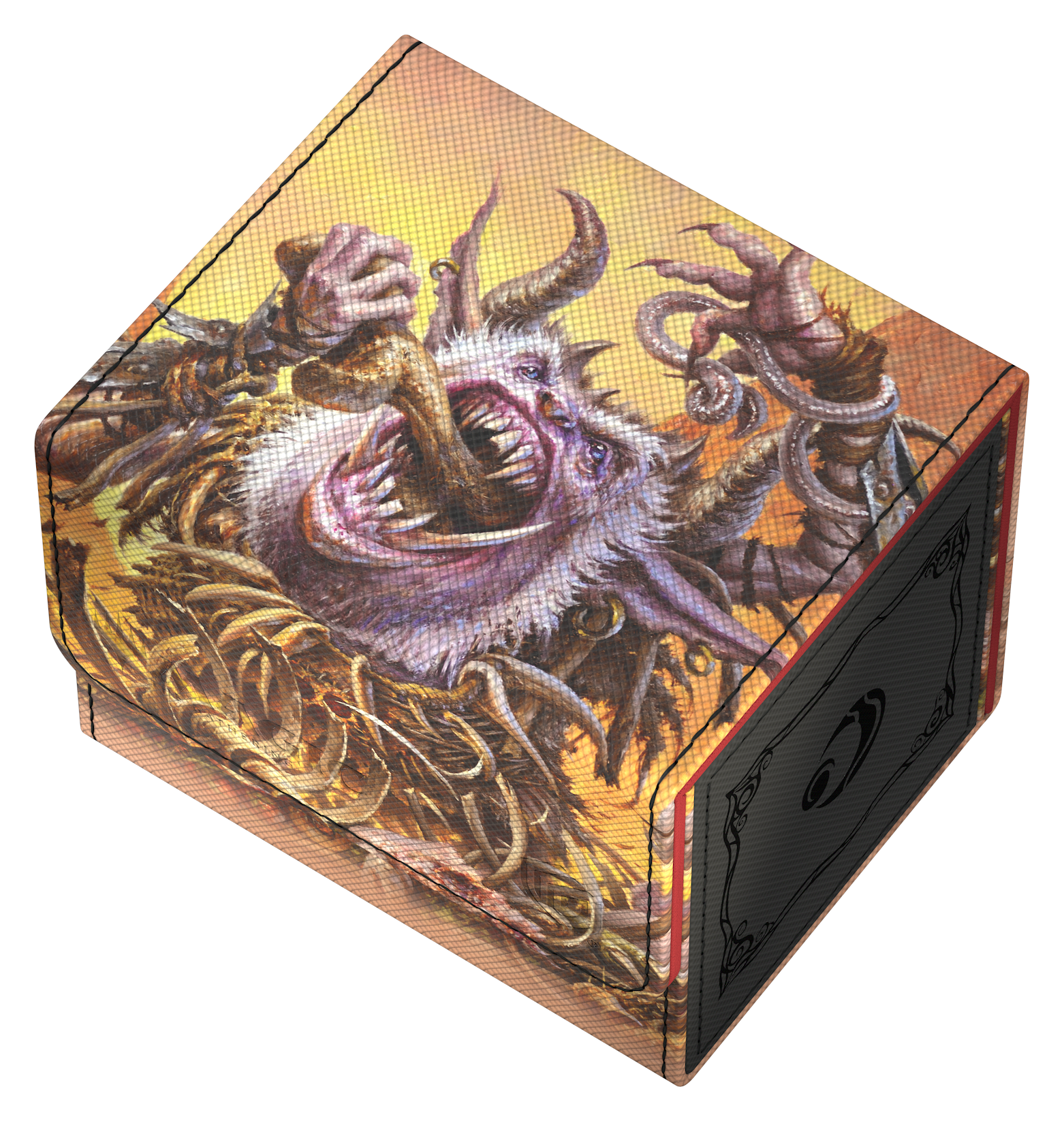The Sidewinder 100+ Xenoskin is a high-quality TCG deck box that offers premium card protection thanks to its resistant Xenoskin material, microfiber inner lining, and strong magnetic closure, while still granting easy and convenient access to the deck inside. The deck boxes are printed in full color with officially licensed artworks from Magic: The Gathering’s upcoming set "Lorwyn Eclipsed". The Sidewinder 100+ Xenoskin is optimized to hold 100 double-sleeved or 120 single-sleeved cards in Ultimate Guard sleeves