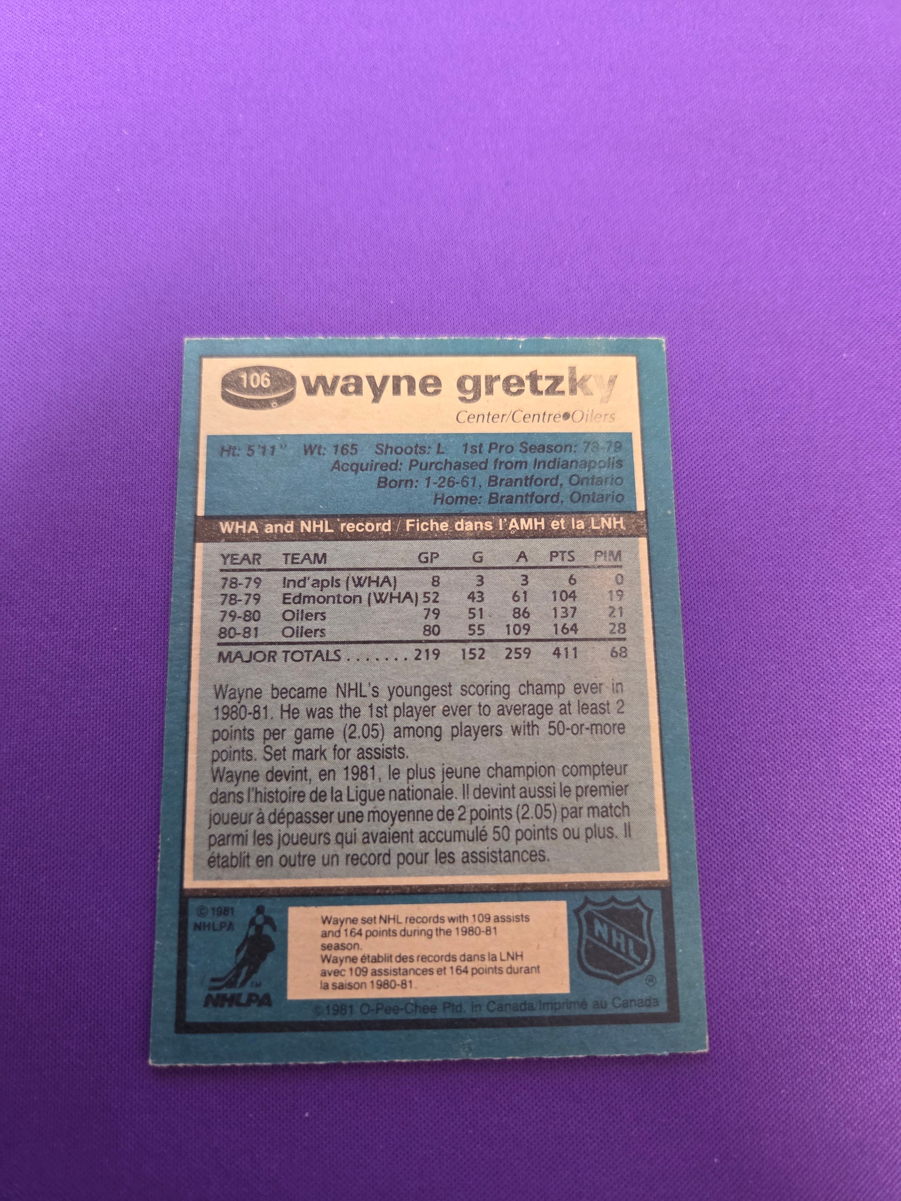 Wayne Gretzky #106 1981 O-Pee-Chee